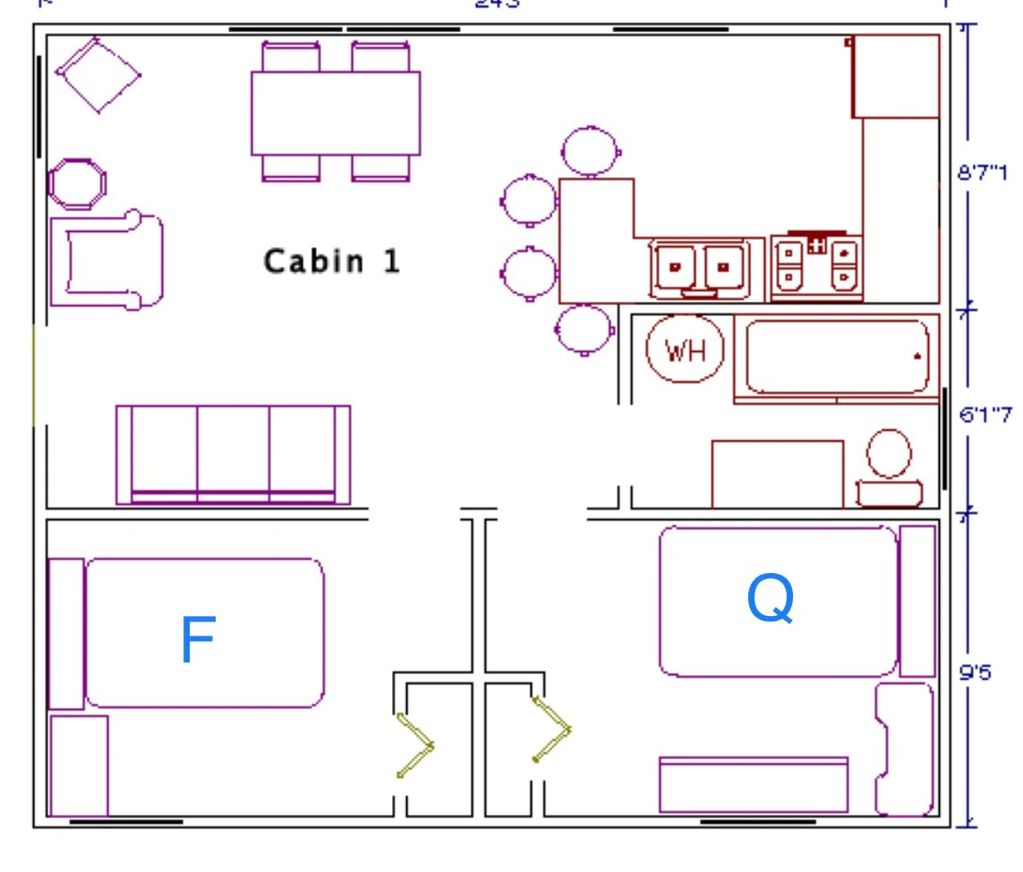 Rates for Cabin #6 are $335/day or $1675/week. It’s priced for 6 guests.
