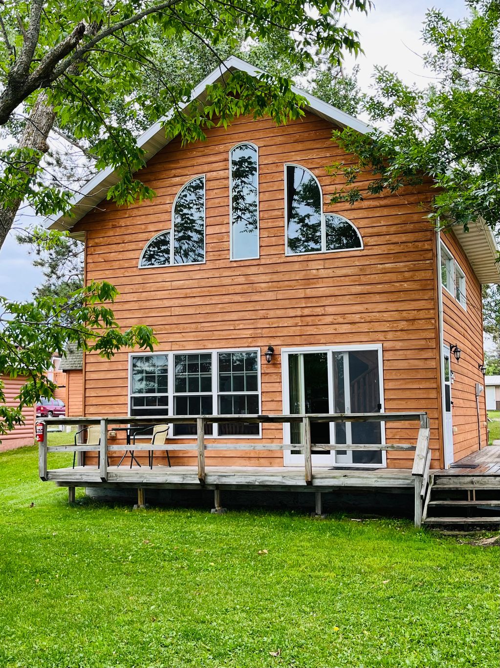 It has a nice deck with a charcoal grill. This cabin is just feet from the lake!