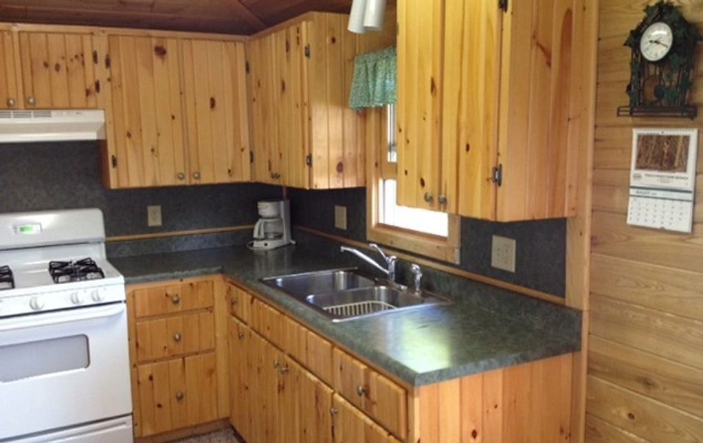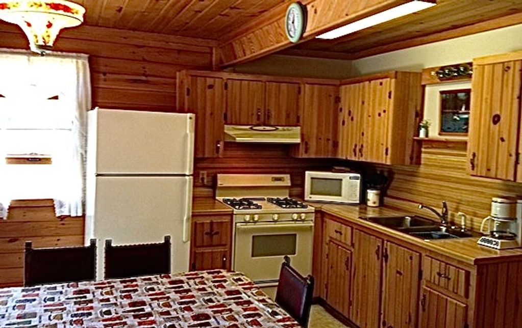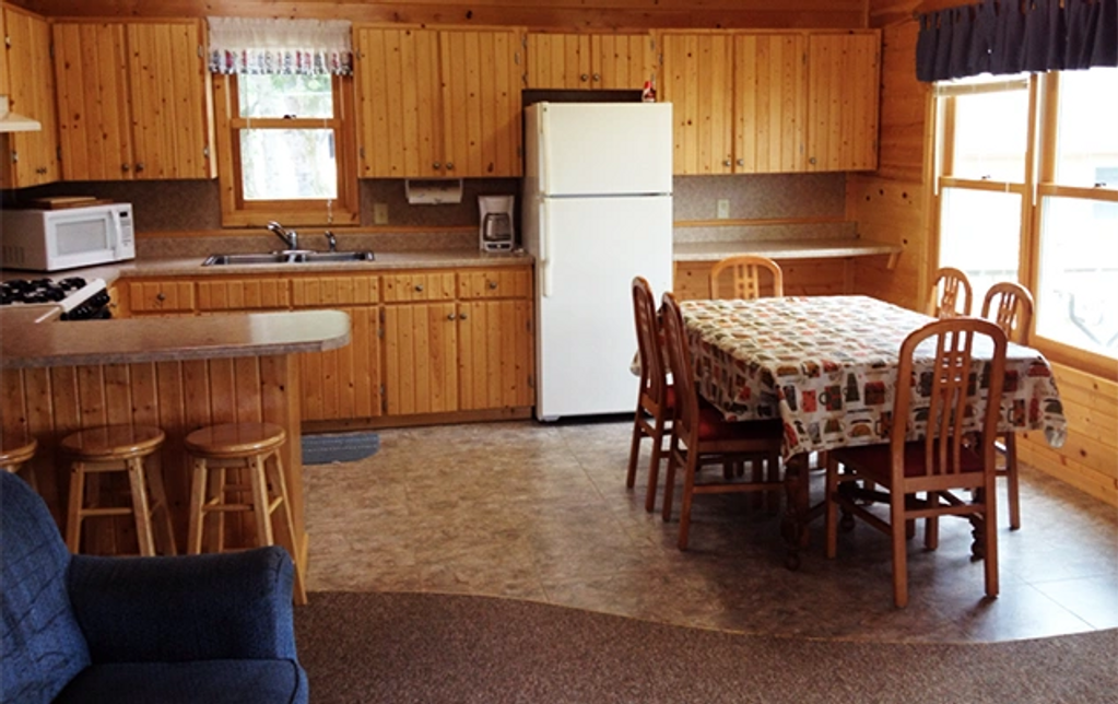 Cabin #4 is a 3 bedroom lakefront cabin. There are 2 twin beds, one full-size bed, and one queen bed.