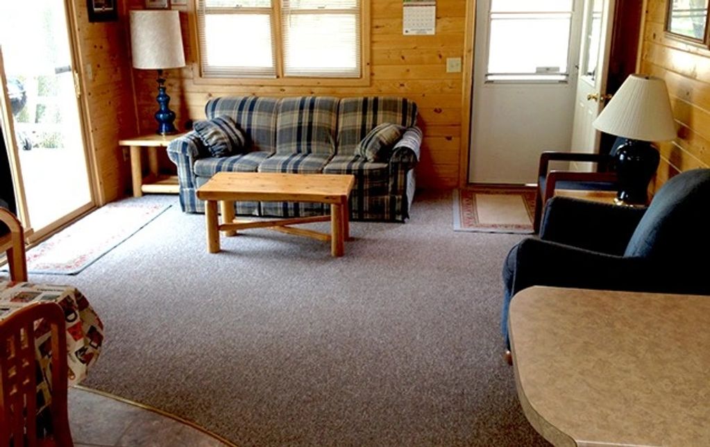 Cabin #1 is a 2 bedroom cabin with a beautiful view of the lake. It has 1 queen bed and 1 full bed.