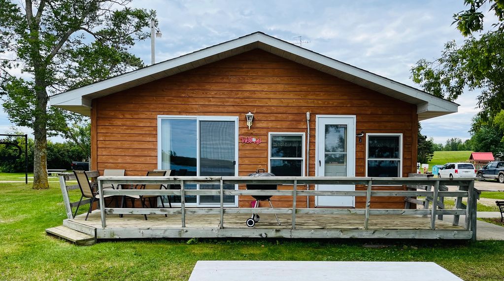 Cabin #5 is 2 bedroom cabin. One room has 2 full size beds and the other room has a full bed. This cabin is lake front with a deck and charcoal grill.