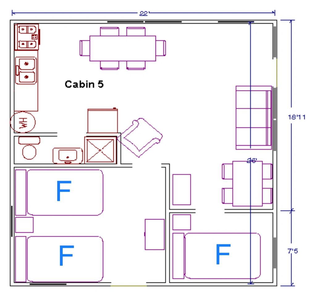 Rates for this cabin is $260/day and $1300/week. Cabin #5 is priced for 4 guests.