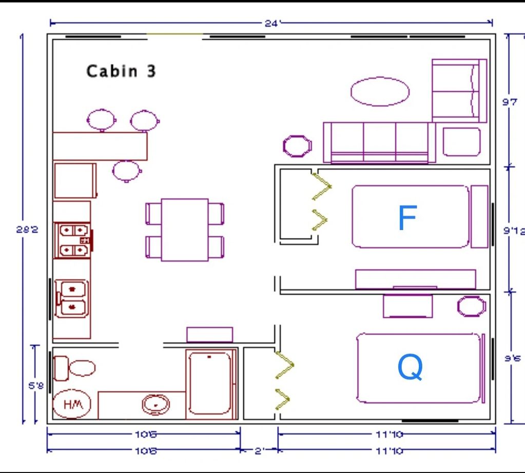 Cabin #3 is priced at $255/day and $1275/week. It is priced for 4 guests, but can sleep 6 with the sofa sleeper.