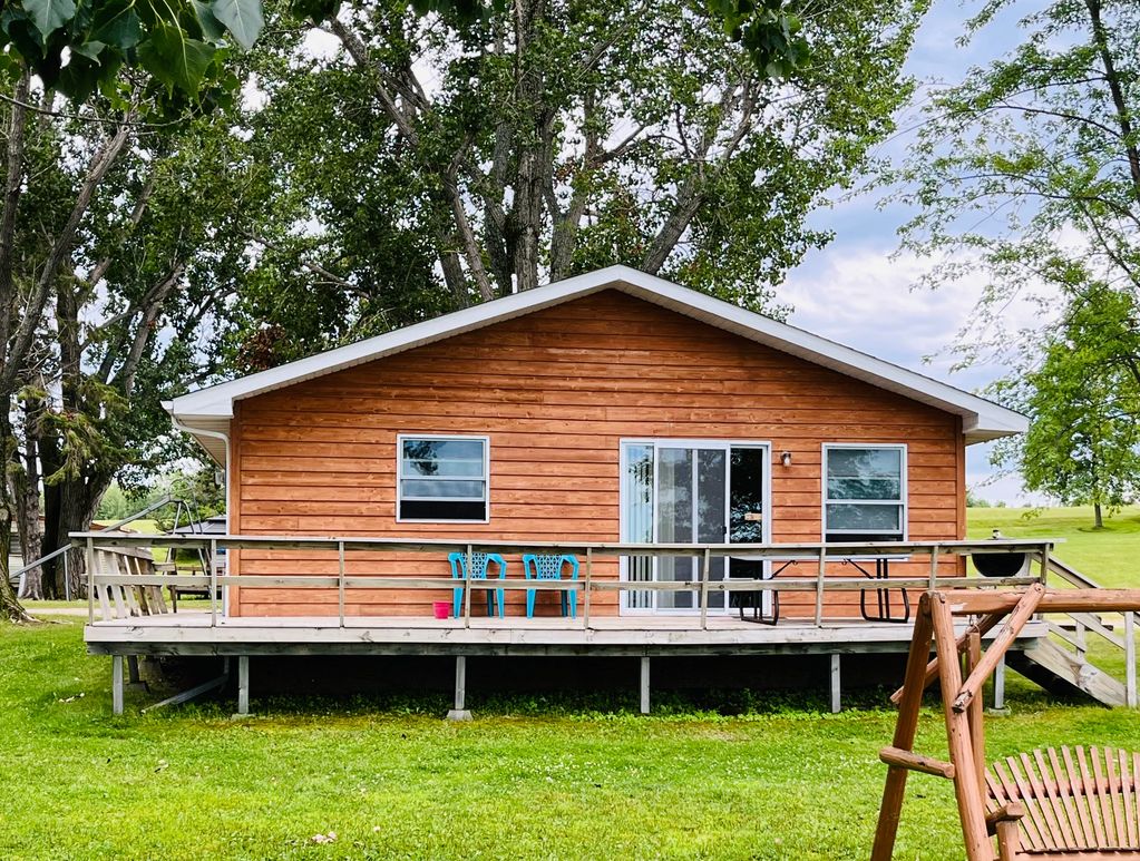 Cabin #2 is a lakefront 4 bedroom cabin. It has 1 queen bed and 3 full-size beds.